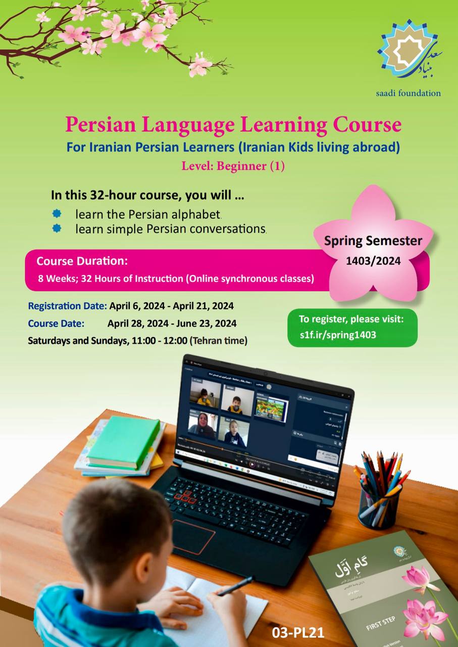 The Saadi Foundation announced the opening of registration for Spring Semester 2023 Persian Language Learning Course specifically designed for young Iranian learners residing abroad. This beginner-level course is set to commence on April 28, 2024 and will run for 8 weeks offering 32 hours of engaging online synchronous classes every Saturday and Sunday from 11:00 to 12:00 (Tehran time).