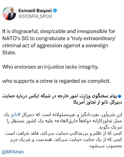 Iranian Foreign Ministry spokesmans message on X